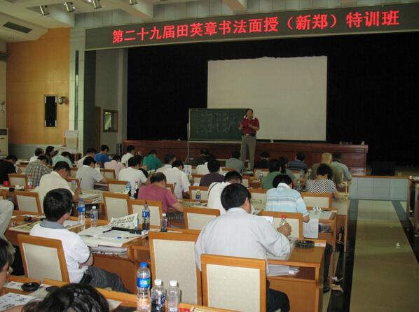 2012年5月18-20日,成功邀请国务院任命书高级书写员,著名书法家田英章亲临本院举办第29届书法面授特训班,来自全国10个省市的87位书友参加了学习,交流。由于本届特训班举办的巨大成功,田英章教授封赵新锋“优秀班长”称号!田英章还为本院亲笔题名!